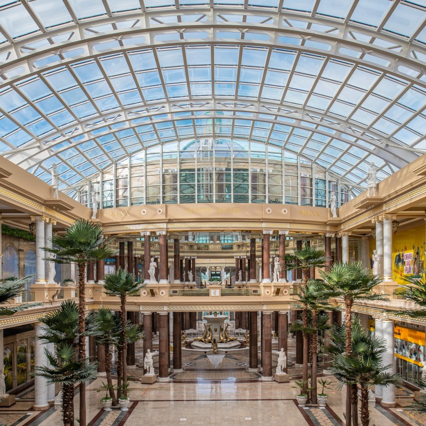 Situada en Trafford City, Barton Square alberga atractivas tiendas de ocio y lujosas boutiques, todo ello bajo una magnífica cúpula y un techo de cristal con bóveda de cañón.
