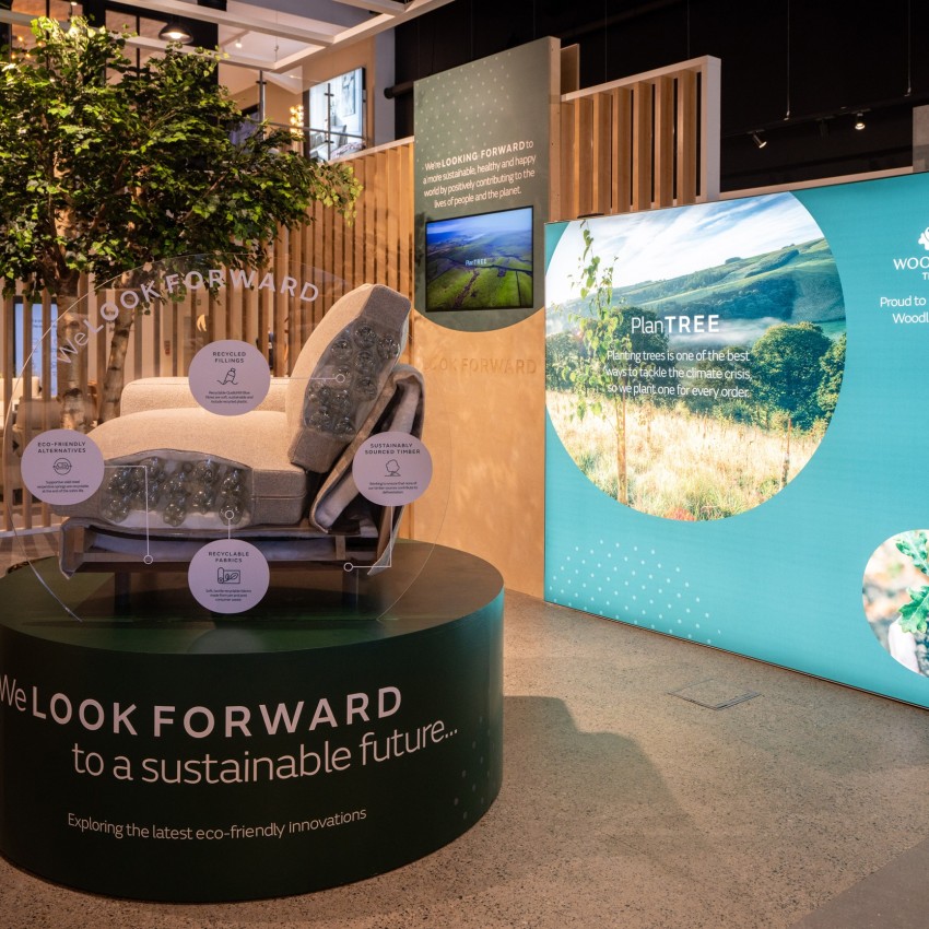 Para mayor estabilidad, el árbol se equipó con una placa base de 50 cm x 50 cm, que garantizaba la seguridad del expositor. Durante todo el proyecto, trabajamos en estrecha colaboración con el equipo de Sofology, compartiendo ideas y asegurándonos de que el árbol encarnara la narrativa de su gama de sostenibilidad. El resultado final, instalado ahora en una de las salas de exposición de Sofology, es un impresionante abedul de 3 metros que representa a la perfección el compromiso de Sofology con la sostenibilidad, al tiempo que realza el espacio de su sala de exposición.